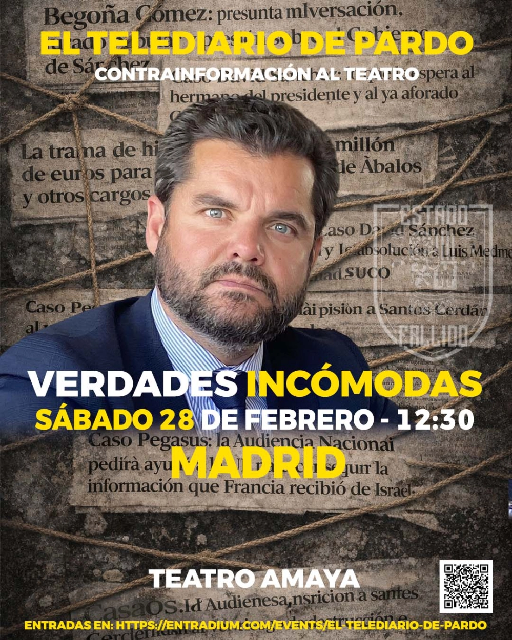 Tras el éxito en el canal de YouTube, donde en apenas unos meses ha superado los 72.000 suscriptores, el Telediario salta al escenario en forma de monólogo sin filtros, sin corrección política y sin concesiones, para contar lo que no se cuenta y señalar a quienes nadie señala. No es un show, ni un espectáculo para pasar el rato: es una hora de realidad, ironía y crudeza contra el poder, el sistema y su corrupción, con un telediario cargado de bombazos, exclusivas y VERDADES INCÓMODAS que no vas a escuchar en ningún otro sitio.
